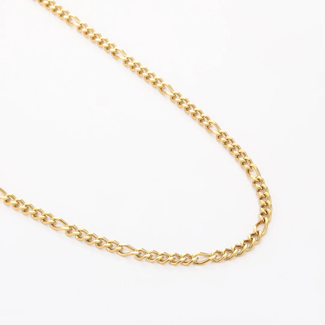 Con una longitud ajustable de 40 a 45 cm y un peso ligero de 18 gramos, esta cadena se adapta a tu cuello con total comodidad. Fabricada en acero inoxidable hipoalergénico y recubierta con un delicado baño de oro de 18K, ofrece un brillo duradero que no se oxida ni pierde color, incluso con uso diario.